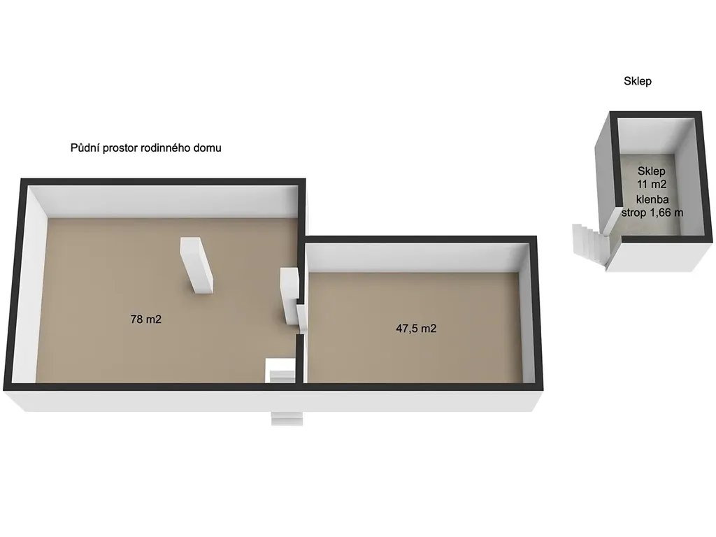 • Rodinný dům s dispozicí 3+1, podlahová plocha přízemí 114,2 m², půda vhodná k vestavbě obytných prostor 125,5 m², sklep 11 m²