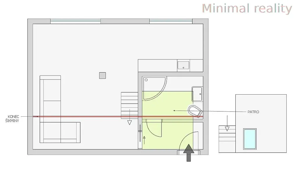 Koupelna je vybavena světlovodem, pračkou, sprchovým koutem, umyvadlem, osvětleným zrcadlem se skříňkou, topením a toaletou.