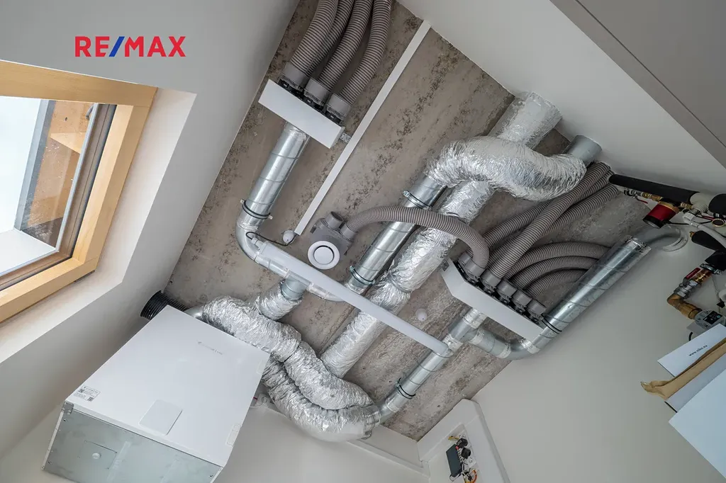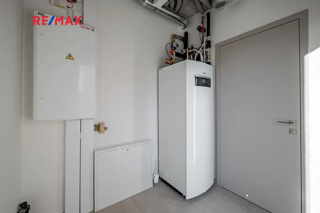 • Technologie pro Váš komfort a úspory: Dům má energetický štítek "A" (mimořádně úsporná budova). Vytápění a chlazení zajišťuje moderní tepelné čerpadlo v kombinaci s podlahovým vytápěním, rekuperací a inteligentním systémem řízení. Předpokládané měsíční náklady jsou kolem 5 700,- Kč.