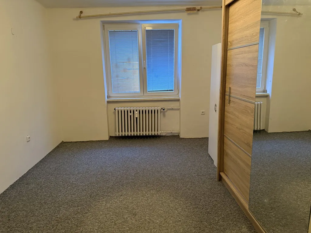 Byt má dva samostatné pokoje, u jednoho z nich balkon. Prostorná čtevrcová kuchyně s rohovou kuchyňskou linkou a sporákem umožňuje umístění velkého jídelního stolu nebo dokonce vytvoření malého obývacího pokoje spojeného s kuchyní. V předsíni jsou velké vestavné skříně, koupelna s vanou a samostatné WC s oknem. Byt je čistě vymalován a uklizen. Ihned k nastěhování. K nájmu je nutno připočíst zálohy na vodu dle počtu osob a elektřinu 1500,- Kč. Plyn zde zaveden není.