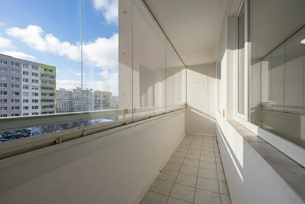 Byt je dispozičně velmi dobře řešený s kuchyní a obývacím pokojem. Dále se dvěma prostornými ložnicemi s předokenními žaluziemi, nádhernou koupelnou a samostatnou toaletou s umyvadlem. Byt má lodžii a sklep. Byt je velmi tichý a přímo u stanice metra Luka a OC Luka. Parkování je bezproblémové kolem domu na prostorném parkovišti.