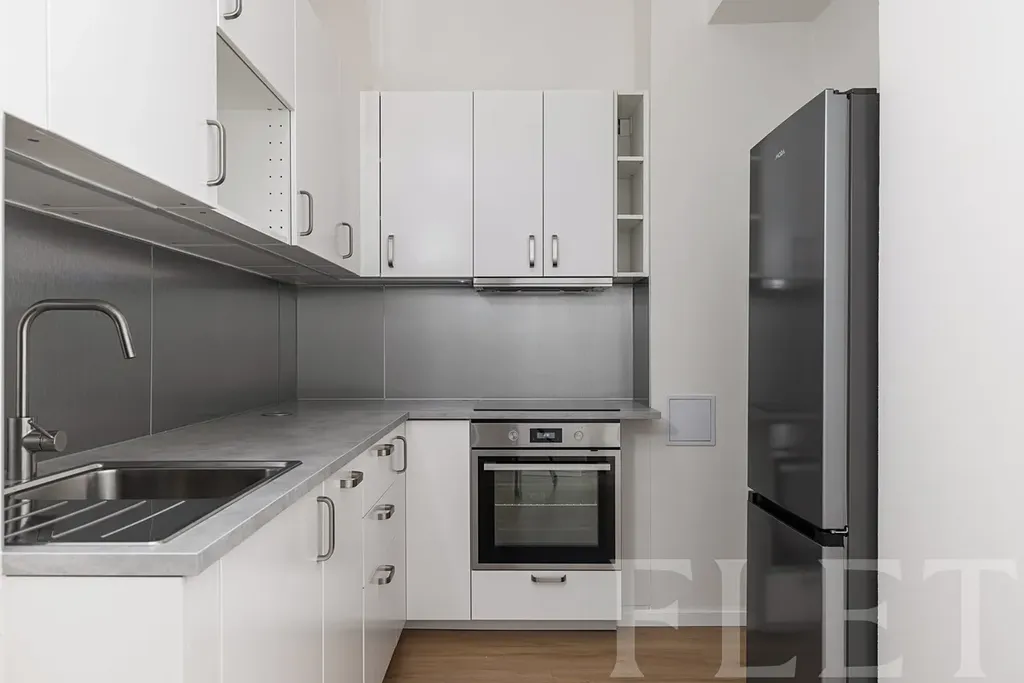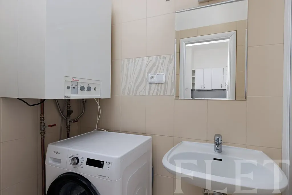 Při vstupu do bytu vás uvítá místnost s moderním kuchyňským koutem, kde najdete všechny důležité spotřebiče: myčku, lednici i elektrickou troubu, varnou desku a digestoř. Dostanete se odsud do obou obytných místností, do krásné světlé koupelny i na oddělenou toaletu. V koupelně je pro vás připravena pračka. Celý byt je laděn do světlých odstínů, při jeho vybavování se vám meze klást nebudou. K bytu také náleží nadstandardně velký sklep, který zajistí úložné prostory.