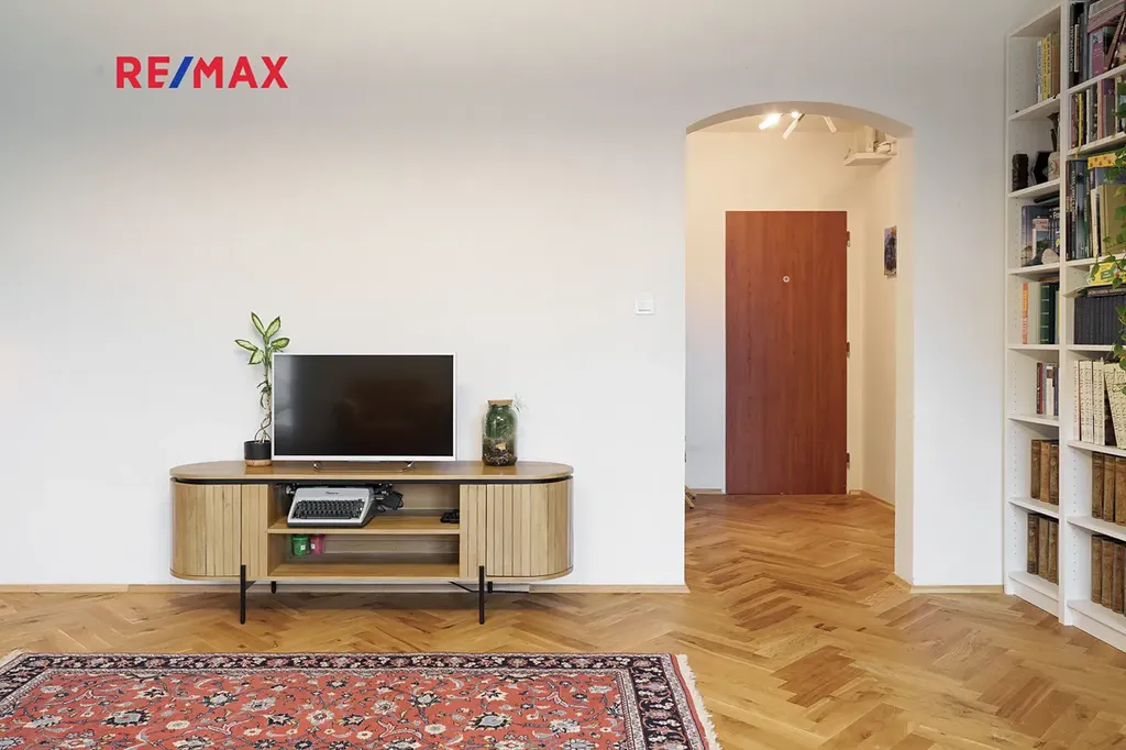Byt je po rekonstrukci před nedávnou dobou, velkou ozdobou jsou parkety bez prahů vedoucí do ložnic, obýváku, kuchyně i chodeb. Obývák je tak velký, že by zde snadno mohla vzniknout ještě jedna ložnice. Nebo by se zde návratem k původním dveřím mohl obnovit přístup do kuchyně a v jídelně by mohla být třetí ložnice. Teď je to ale krásný velkorysý prostor se dvěma ložnicemi, obývákem s výstupem na lodžii, samostatnou kuchyní a jídelnou, která je srdcem bytu a má výstup na druhou lodžii. Velkým bonusem bytu je walk in šatna v předsíni. Koupelna je samostatná a najdete tu jak sprchový kout, tak vanu.