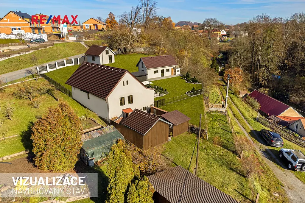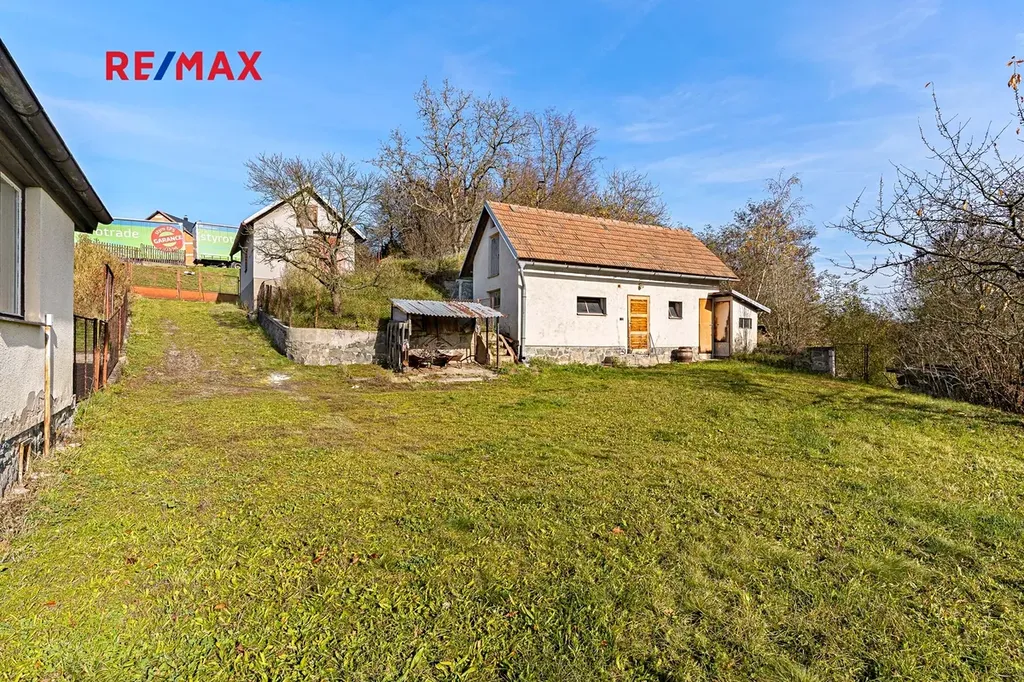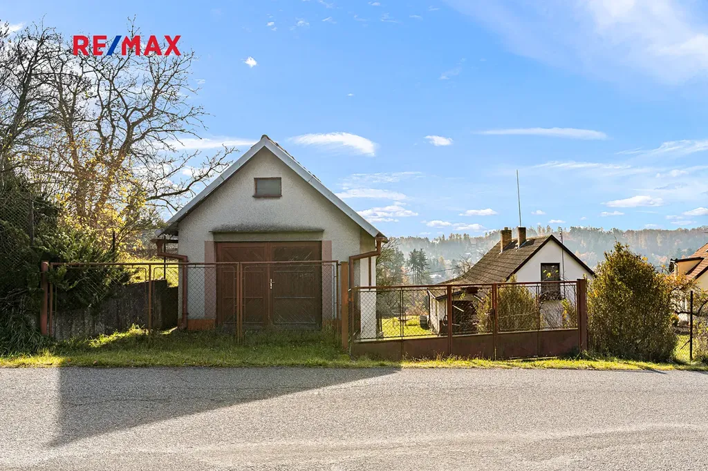 Nemovitost stojí na prostorném, jižně orientovaném pozemku o celkové výměře 1 455 m² a kromě samotné chalupy k ní náleží také soubor vedlejších staveb – zděné i dřevěné kůlny a zděné garáže, které poskytují dostatek prostoru pro dílnu, skladování i parkování.