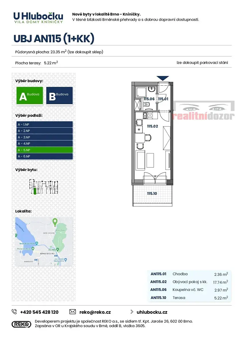 Lokalita je velmi atraktivní díky blízkosti přírody, Brněnské přehrady a wellness Maximus. Přímo naproti domu se nachází zastávka autobusu 302 s výborným spojením do centra. V okolí je kompletní občanská vybavenost – Penny Market, Uni Hobby, Lidl, lékárna a další služby.