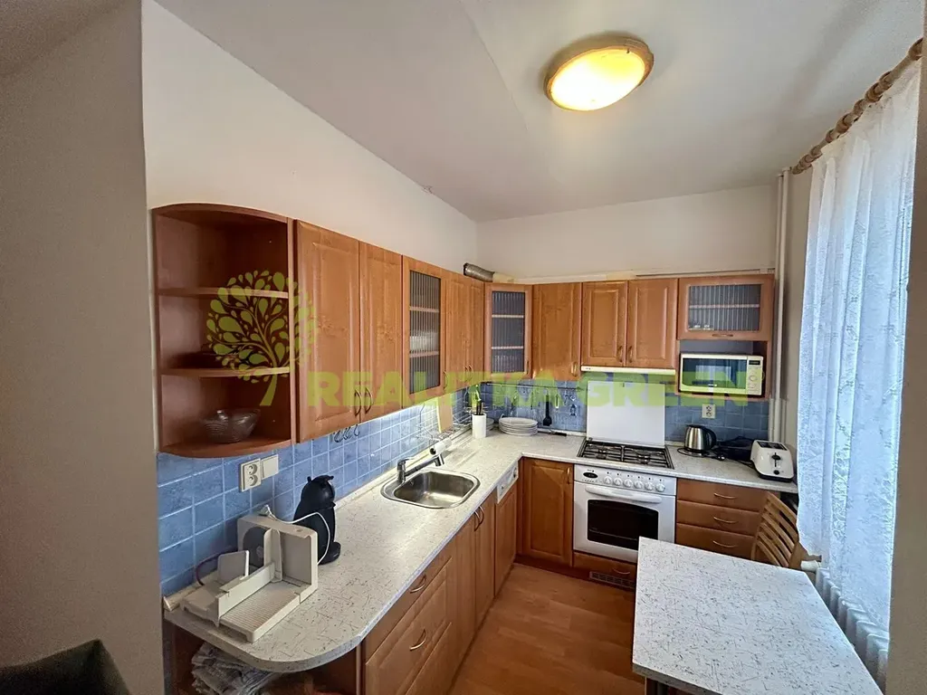 Dispozičně: vstupní chodba, pokoj, kuchyň, prostorný obývací pokoj s balkonem, ložnice, koupelna se sprchovým koutem, samostatné wc. Kuchyňská linka je vybavena plynovým sporákem s elektrickou troubou. Vybavení bytu zůstává tak jak je vidět na fotografiích.