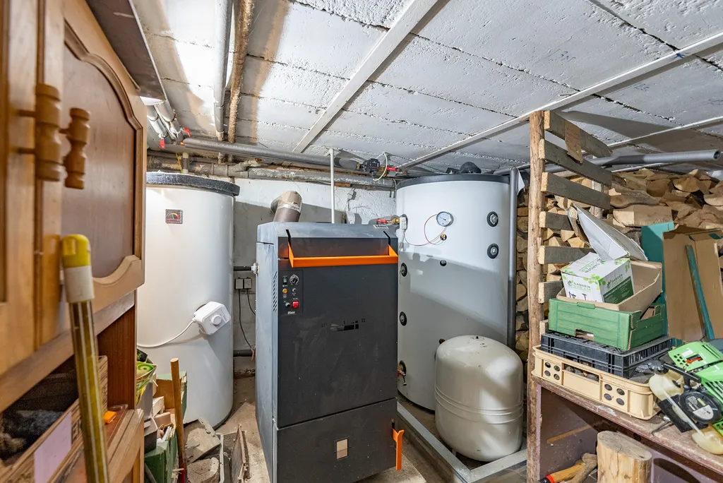 Dům je částečně podsklepená. Zde najdete větší místnost s technickým zázemím (kotel na tuhá paliva, akumulační nádoby, bojler a prostor na skladování dřeva). A jednu menší místnost, která slouží ke skladování potravin.
