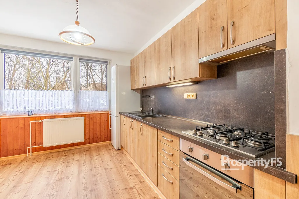 Byt je prakticky dispozičně řešený a nabízí dostatek úložného prostoru díky vestavěným skříním. Má zděnou koupelnu a kuchyňskou linku vyrobenou na míru u truhláře, která je ve velmi dobrém, udržovaném stavu.