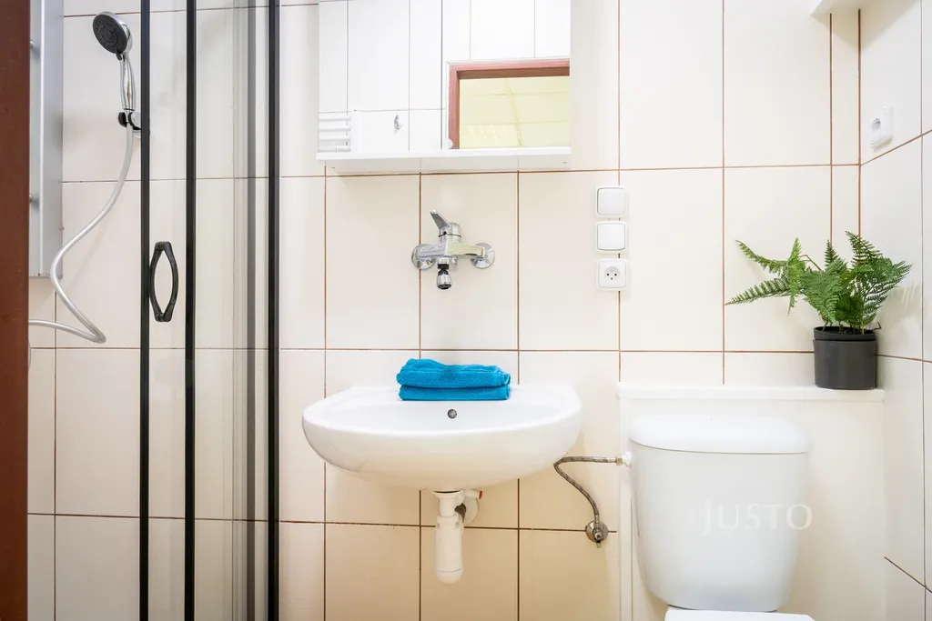 V kuchyni zůstává kuchyňská linka včetně sporáku, trouby, mikrovlnné trouby, s elektrickou troubou, dřez s pákovou baterií, lednička s mrazákem, kombinovaný plynový kotel. Vhodné pro páry, bez zvířat a dětí. MHD 5 min chůze od domu.