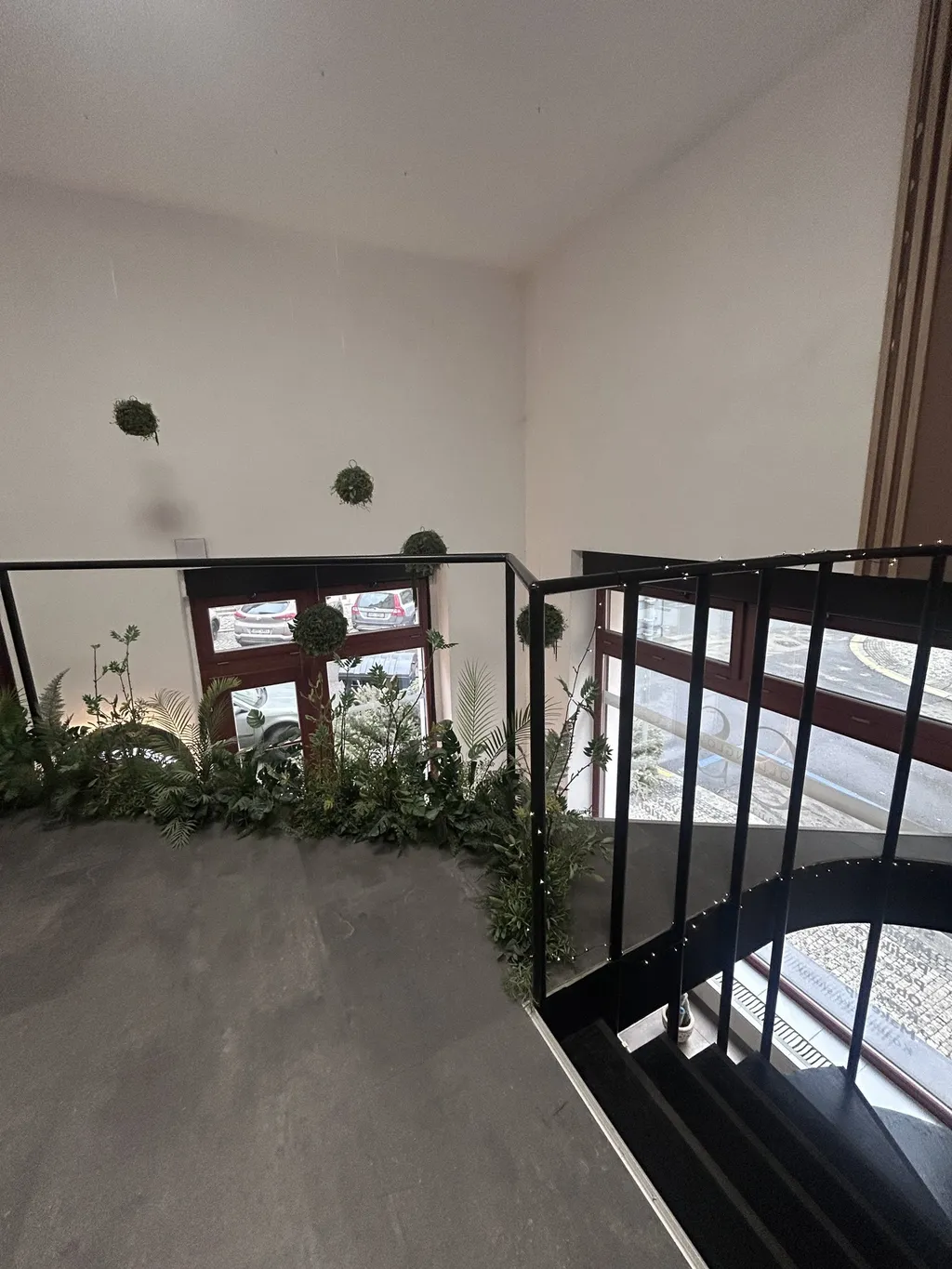 Prostor má dřevěná okna a výklad s elektricky ovládanými venkovními roletami. Na podlahách jsou vinylové krytiny, PVC a keramická dlažba.