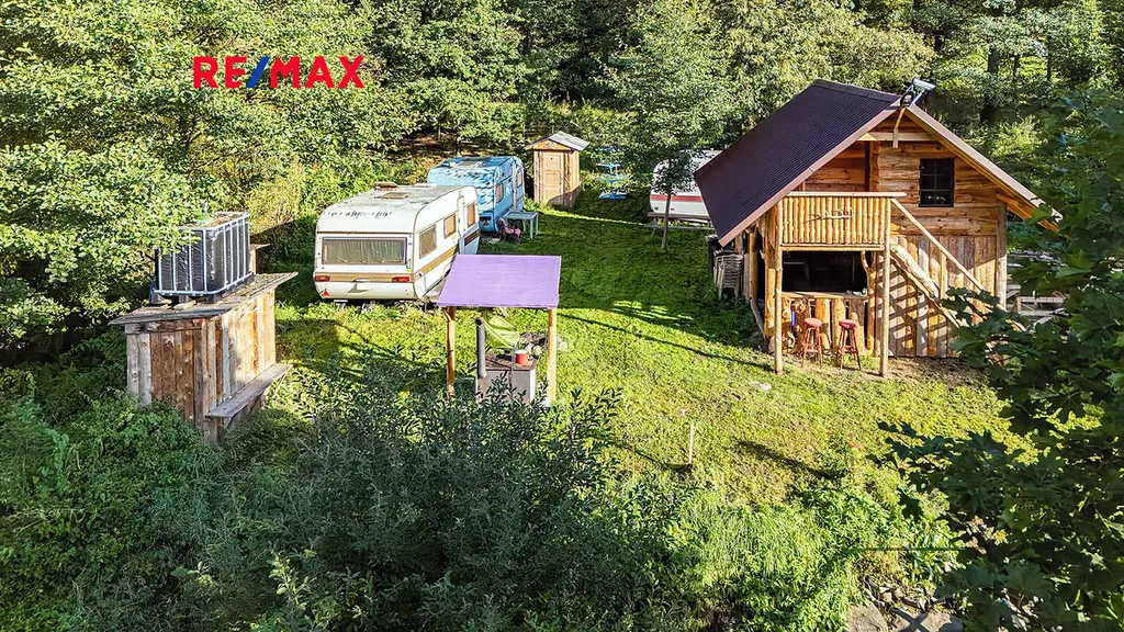 • Přilehlý pozemek za stodolou, s menší dřevostavbou, momentálně soukromé využití