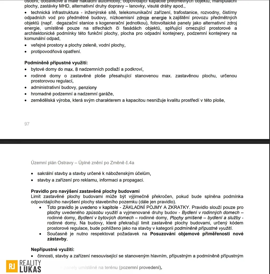• Podmíněně přípustné využití: rodinné domy, hotely, koleje, internáty, lehká výroba a služby s nízkým dopadem na okolí (hluk, emise, doprava).