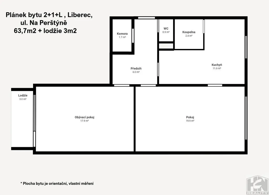 Byt 2+1+L, Na Perštýně, Liberec, 63,7m² + lodžie 3m²