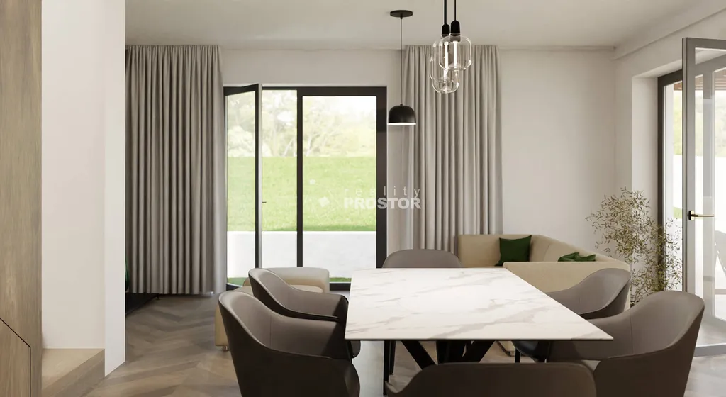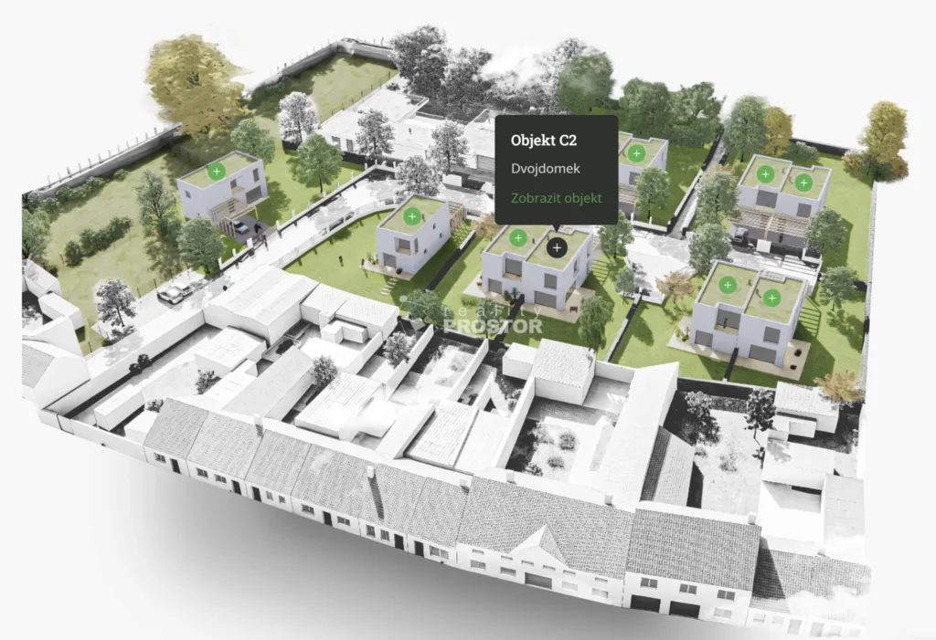 Jedná se o dvoupodlažní, moderní rodinný dům (dvojdům) 5+kk, 131,7m2, s plochou střechou, který je postaven na pozemku o rozloze 406 m2, v rezidenční čtvrti, v centru města Roudnice nad Labem. Dispoziční členění rodinného domu je ideálních 5 pokojů + kuchyňský kout.