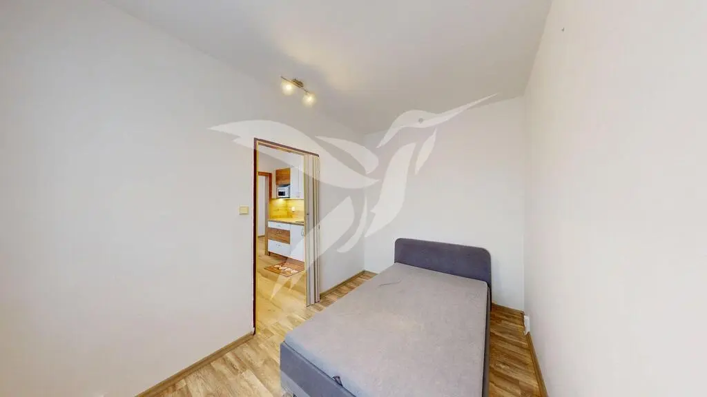 Bytová jednotka o velikosti 40 m2 se nachází v 2. NP panelového domu bez výtahu a skládá se z předsíně, průchozího pokoje, pokoje včetně kuchyňské linky, samostatného pokoje, koupelny s toaletou a k bytu náleží i sklepní kóje situována v suterénu bytového domu. Nabízí se i možnost využívat sušárnu či kočárkárnu. Nemovitost se pronajímá jako částečně zařízená a její součásti je kuchyňská linka se spotřebiči (sporák + digestoř, kombinovaná chladnička), dále jídelní set, dvoulůžková postel s úložným prostorem, předsíňová stěna na míru. Vytápění je zajištěno dálkovými dodávkami a ohřev vody elektrickým bojlerem.