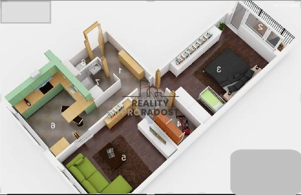 - v obývacím pokoji je balkón 3 m2, který se bude za rok revitalizovat