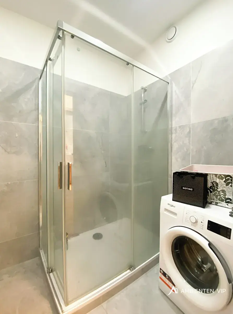 Byt nabízí 2 neprůchozí plně vybavené pokoje, obývací prostor s kuchyní, koupelnu se sprchovým koutem, pračku, šatnu a balkón o velikosti 6 m2 na který se dostanete přes francouzské okna, které zajišťují krásný výhled a přirozené světlo. Vytápění je řešeno teplovodními radiátory. Ty jsou vytápěny v celém domě ze společné kotelny, měření kalorimetrem. Veškerá okna v bytě jsou trojskla, kdy jedna z vrstev je protihluková, zaručí tak maximální soukromí a ticho v samotném bytě.