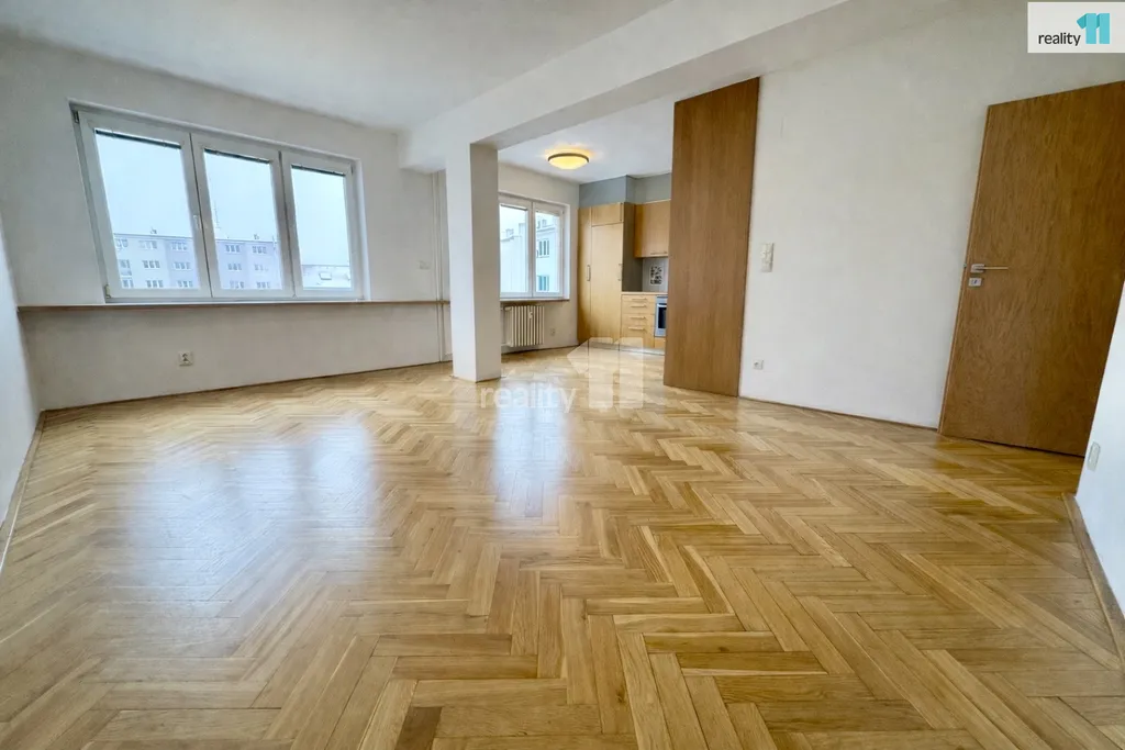 Byt působí velmi příjemným a vzdušným dojmem, je výborně prosvětlený a nabízí nadstandardní prostorové řešení. Vstupní chodba je prakticky členěna a vede do dvou neprůchozích pokojů, které jsou vybaveny vestavěnými skříněmi. Z chodby je dále přístupná koupelna s WC. Dominantou bytu je skutečně velkorysý obývací pokoj s kuchyňským koutem, který poskytuje dostatek prostoru jak pro relaxaci, tak pro jídelní část. Kuchyň je plně vybavena spotřebiči včetně myčky nádobí a velké vestavěné lednice. V celém bytě jsou zachovalé a pečlivě udržované dřevěné parkety, které podtrhují jeho elegantní charakter.