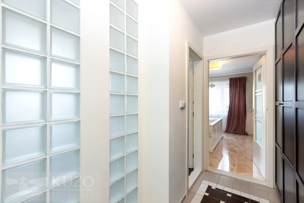 Byt prošel velmi vkusnou rekonstrukcí, díky které působí moderně, vzdušně a nadčasově. Po vstupu do bytu se ocitnete v chodbě s velkými vestavěnými šatními skříněmi, které poskytují dostatek úložného prostoru. Z chodby je přímý vstup do světlé koupelny, ložnice a také do velkorysého otevřeného obytného prostoru s prostorným kuchyňským koutem. Tento hlavní obytný prostor je přirozeným centrem bytu a nabízí přímý vstup na prostornou terasu o výměře 18,23 m², ideální pro relax, posezení i vychutnání si klidného výhledu do okolní zeleně.