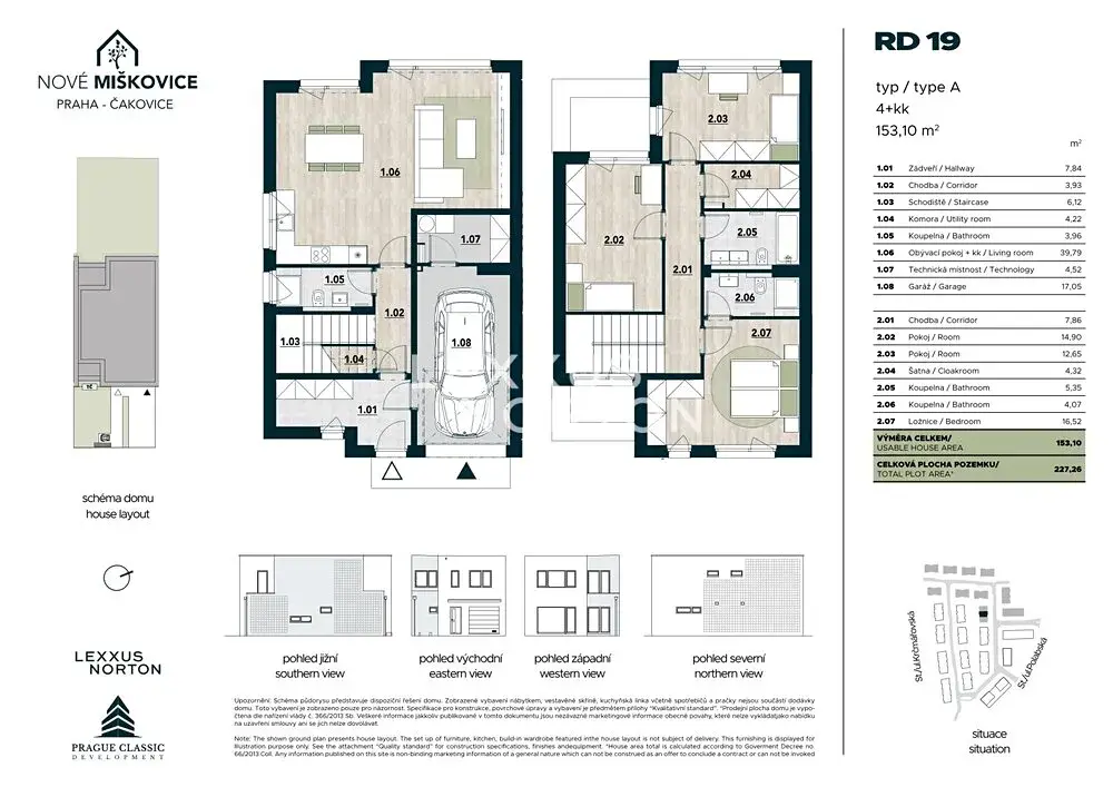 Nabízíme k prodeji rodinný dům o dispozici 4+kk v nově vznikající rezidenční čtvrti Nové Miškovice, který vyniká užitnou plochou 153,10 m² a vlastním pozemkem o velikosti 227,26 m². Dům je navržen s důrazem na praktické rodinné uspořádání, dostatek prostoru a přirozené propojení interiéru se zahradou, které se stává každodenní součástí bydlení.