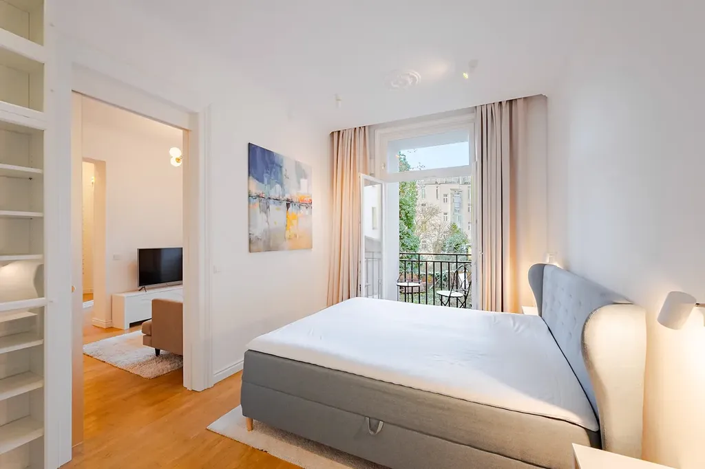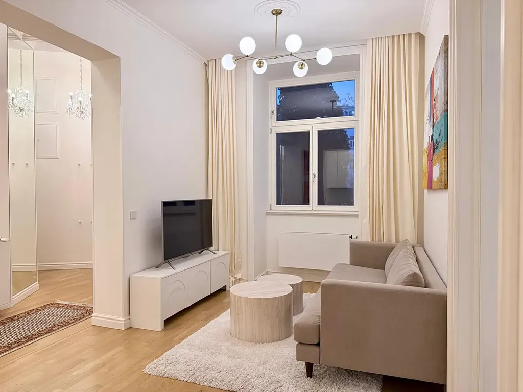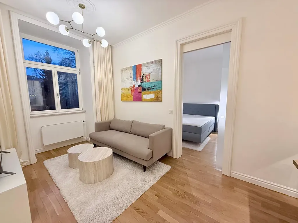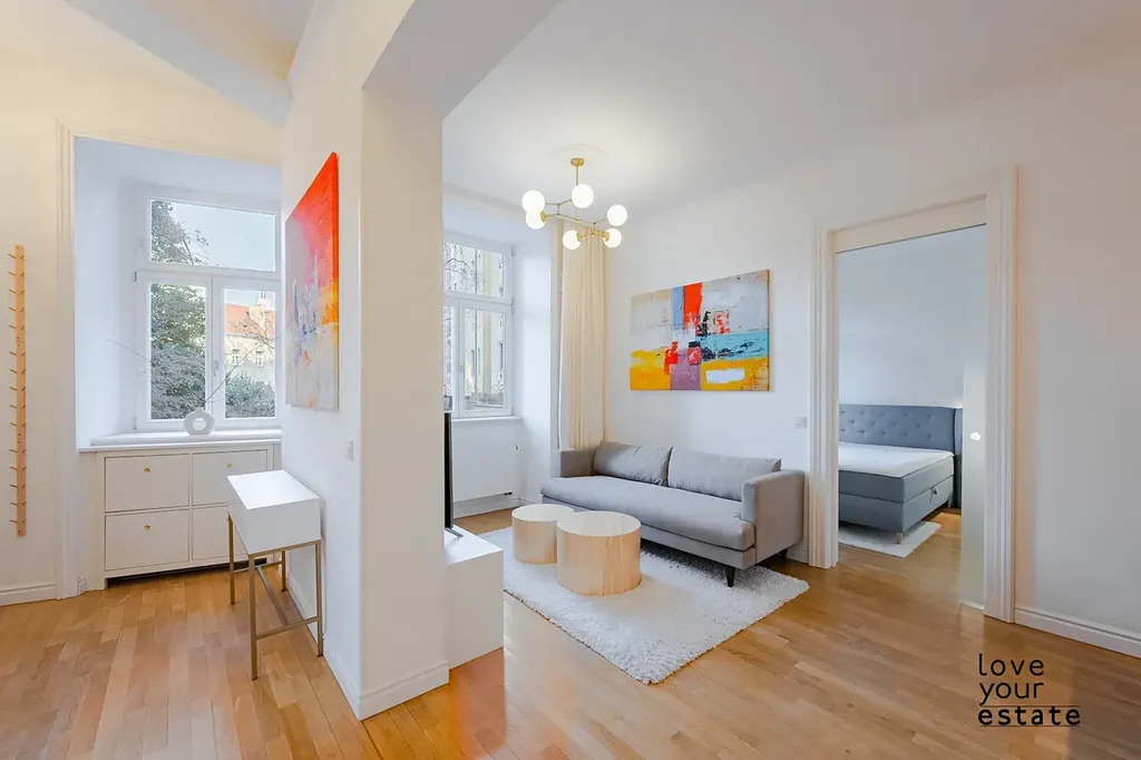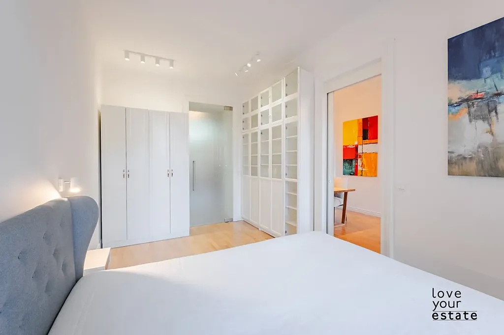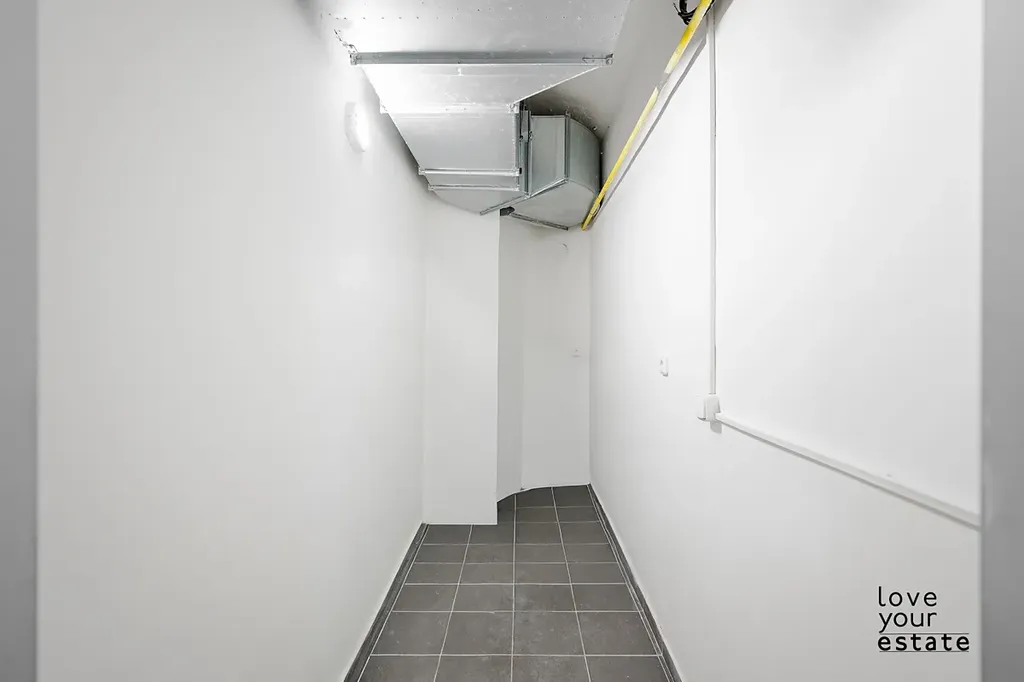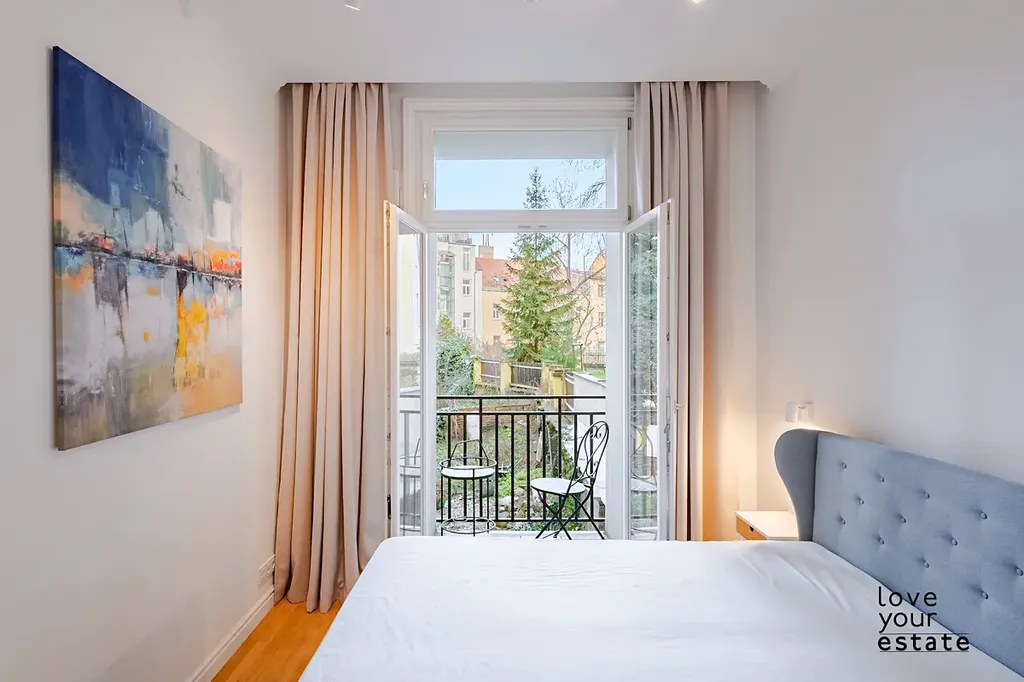 Východní orientace všech oken do zeleného vnitrobloku, byt je tak velmi světlý a absolutně tichý, enormně vysoké stropy dávají bytu luxusní punc. V bytě naleznete i rekuparaci vzduchu.