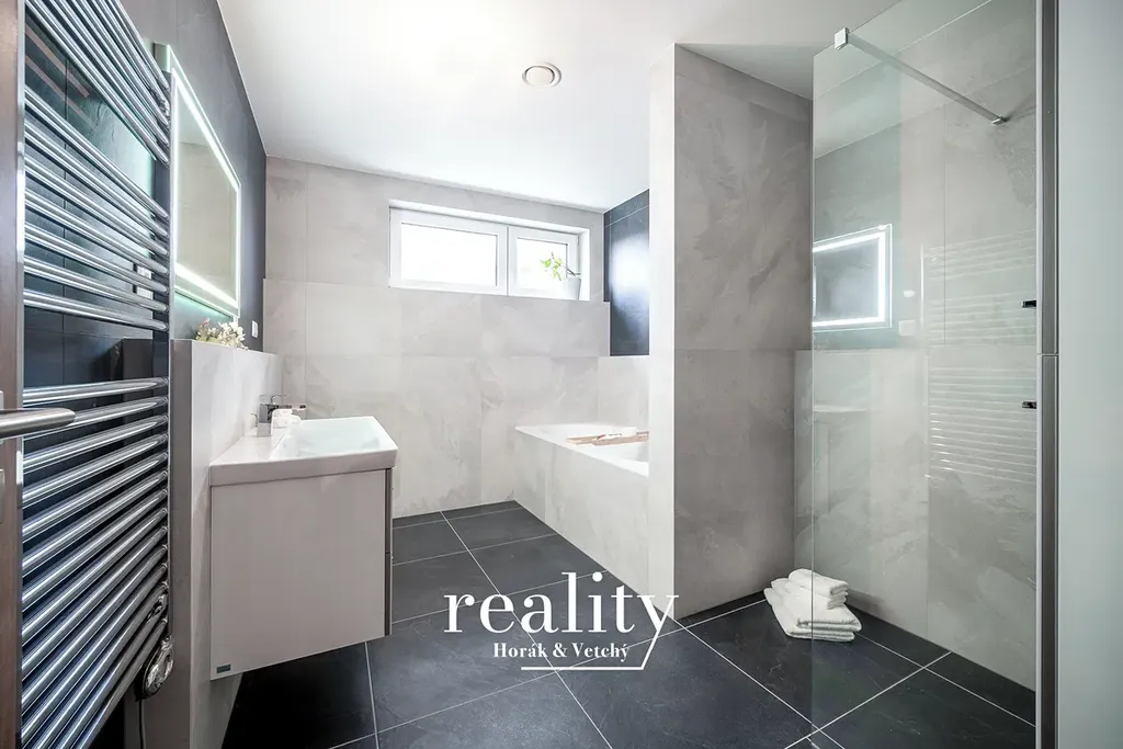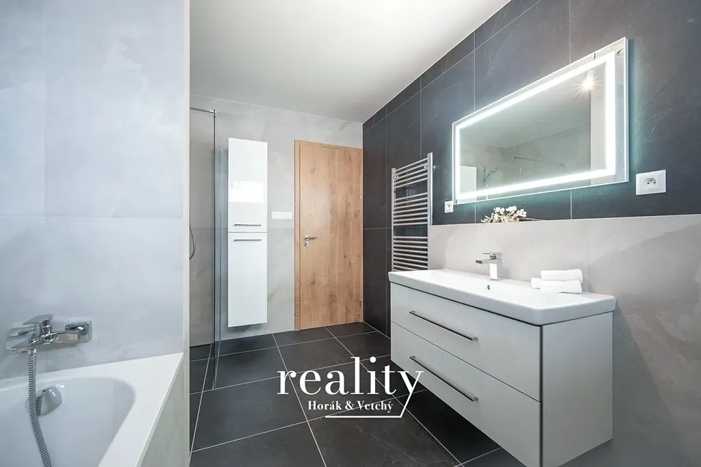● koupelna se sprchovým koutem i vanou, prostor na věž pračka a sušička