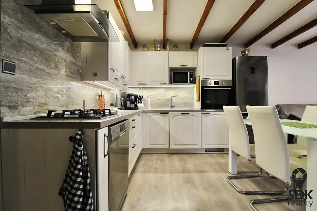 -Plně vybavená kuchyně s myčkou, troubou, mikrovlnnou troubou a plynovým sporákem