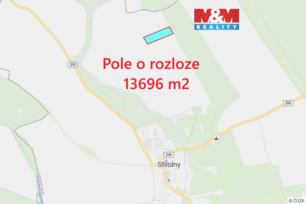 Nabízíme k prodeji pole o výměře 13 696 m² v katastrálním území Stvolny. Tento pozemek je ideální volbou pro zemědělce, investory nebo milovníky přírody, kteří hledají klidné místo pro svou činnost. Nepropásněte příležitost k investici do kvalitní zemědělské půdy v malebné lokalitě. Pro více informací nás neváhejte kontaktovat.