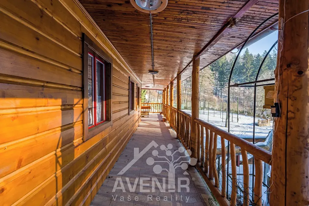 Do nástavby ze dřeva vrchního patra vkročíte přes dřevěnou terasu, kde se můžete posadit s přáteli a užít si nádherného a klidného výhledu na své nové království v srdci slovenské Fatry.