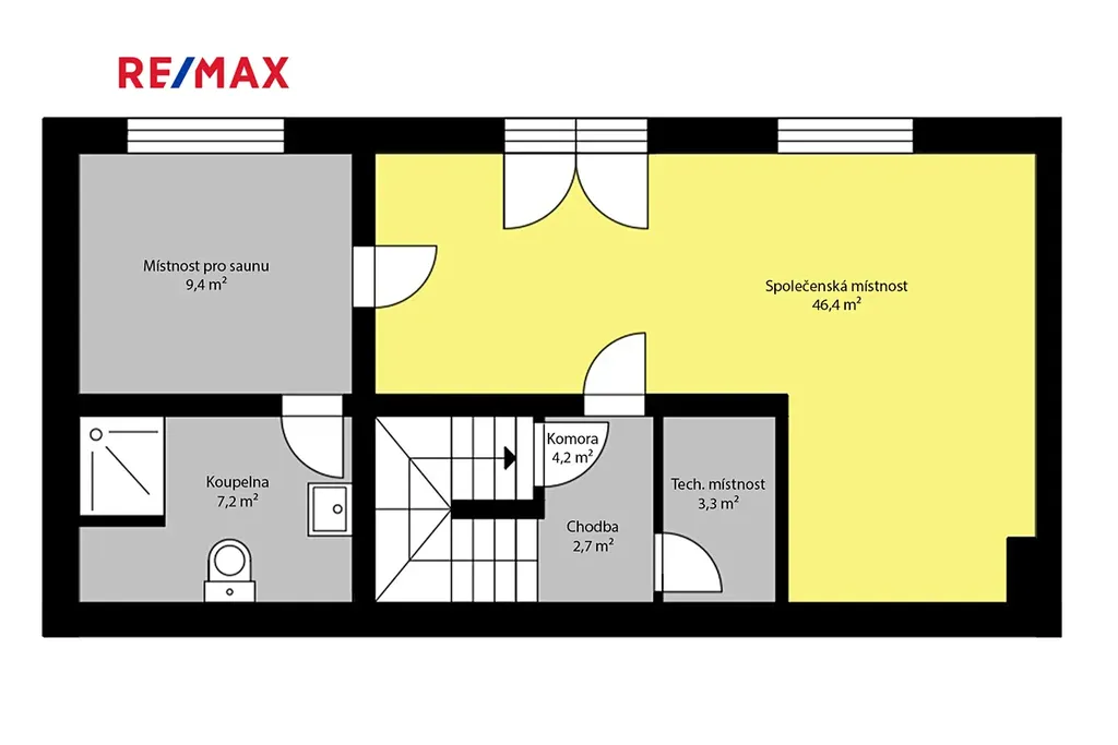 1.NP – možnost samostatného bytu 2+ kk s koupelnou s WC
