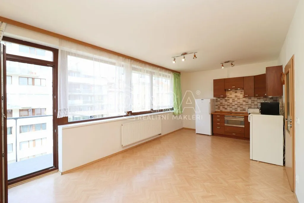 Pronajímá se částečně vybavený, v bytě zůstává kuchyňská linka s indukční varnou deskou, trouba, digestoř, lednice a pračka v koupelně. Ve výklenku možnost umístění postele na spaní. V předsíni naleznete šatní skříň se zrcadlem.