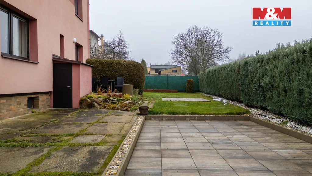 Prostor pro relaxaci i zahradničení poskytuje zahrada o velikosti 740 m², navržená tak, aby byla soukromá, přehledná a praktická pro každodenní rodinný život.