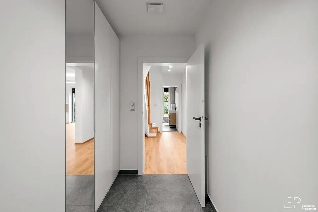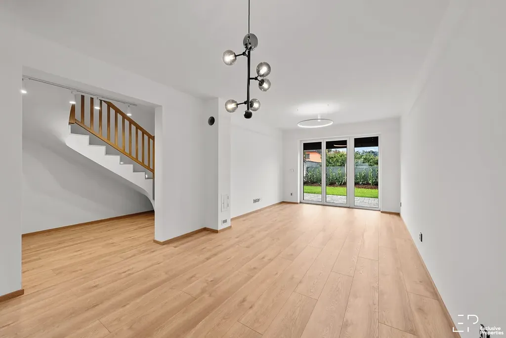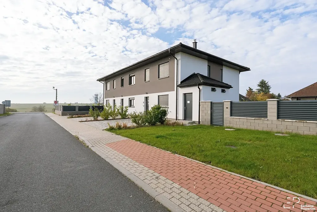 Moderní novostavba o dispozici 4+kk v obci Tuřany u Slaného, v projektu Sun Valley. Jedná se o bytovou jednotku v rámci trojdomu, která užitně funguje jako vnitřní řadový dům nebo byt s terasou, zahradou a parkováním. Zahrada založena, keře, trávník, jednoduchá automatická závlaha.