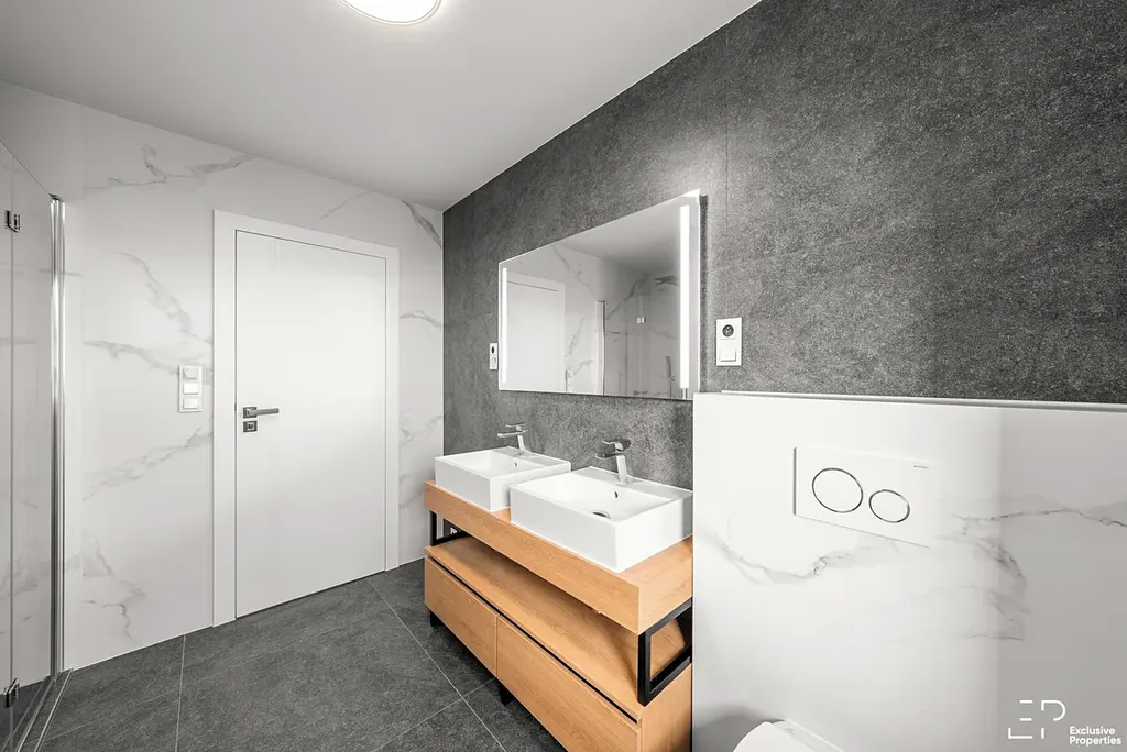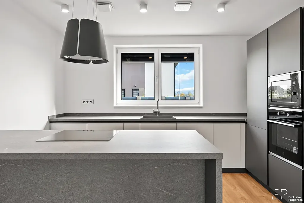 Nová kuchyňská linka se spotřebiči. Kompletní osvětlení, v koupelnách zrcadla a koupelnový nábytek. Předokenní žaluzie dálkově ovládané, možnost chytrého ovládání Somfy TaHoma. Příprava pro krbová kamna v OP, nejsou instalovány.