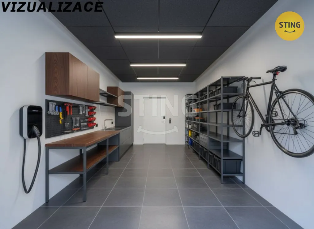 Součástí domu je také garáž, zajišťující pohodlné parkování nebo úložný prostor.