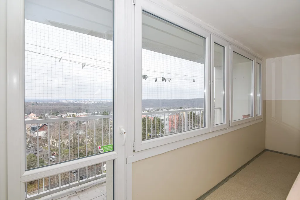 Byt se nachází v posledním 8NP panelového domu s výtahem a má podlahovou výměru cca 46 m². K bytu náleží lodžie o výměře cca 7 m² přístupná z chodby u výtahu a sklepní kóje v -1PP o velikosti cca 3 m².