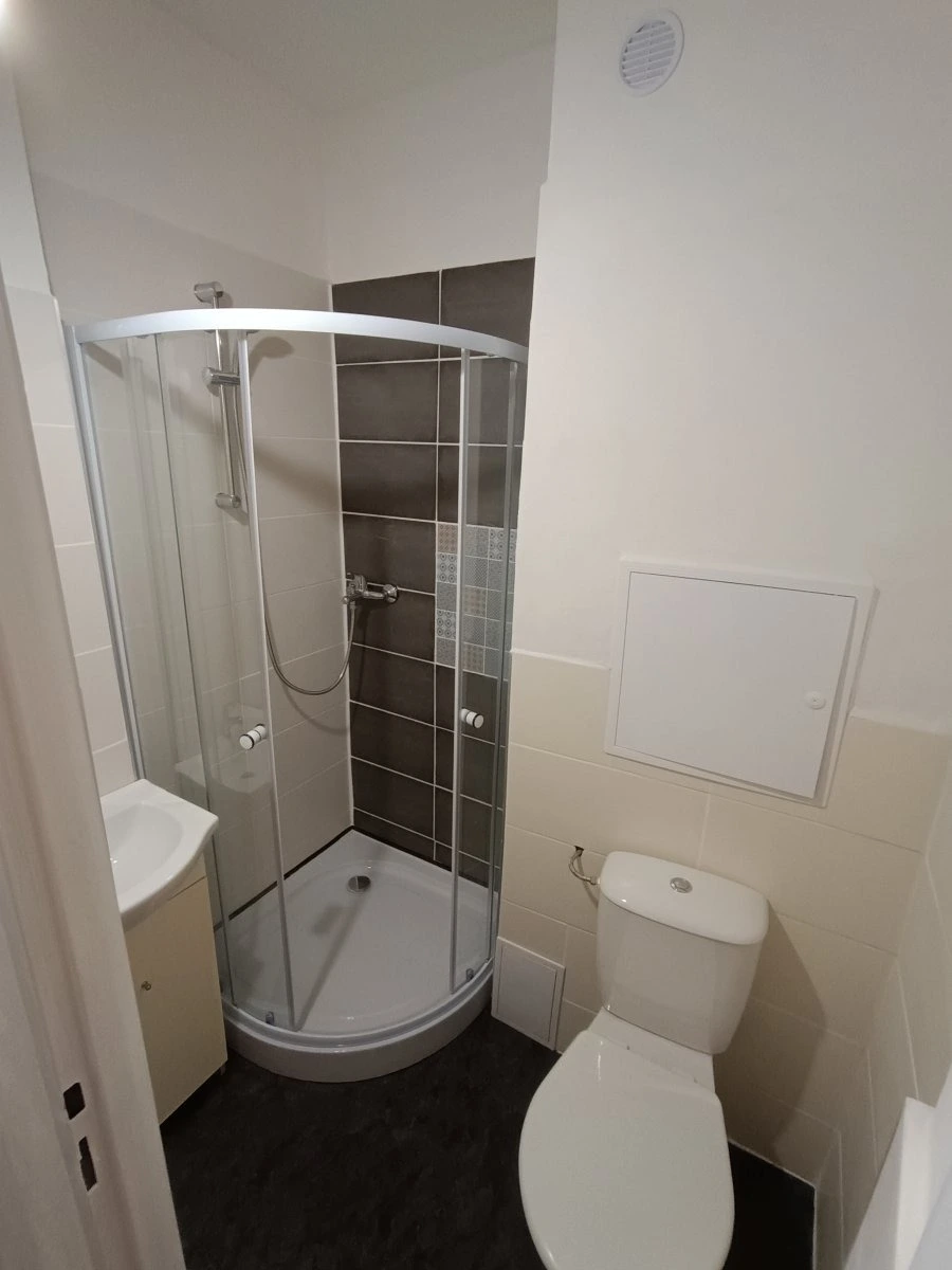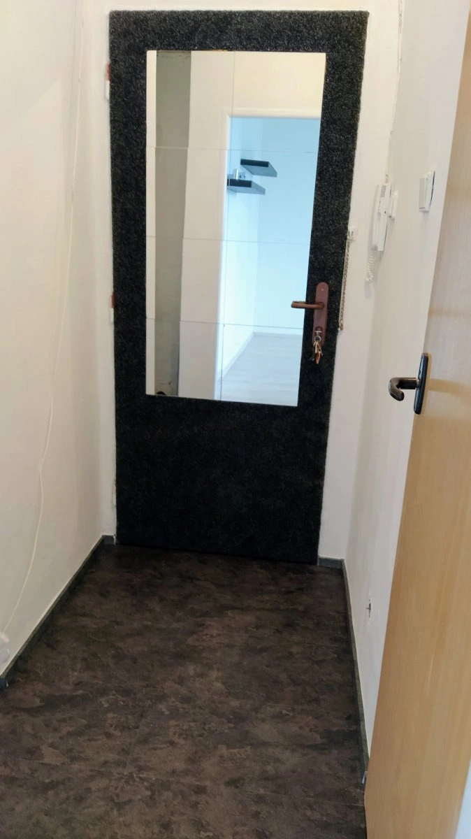 Nabízí se částečně vybavený. Kuchyně disponuje dvouplotýnkovou sklokeramickou deskou. Toaleta a koupelna je umístěna společně. Najdeme zde sprchový kout. Pokoj je nevybavený. Z místnosti se dostaneme na balkon. V ceně nájemného je zahrnuto i pojištění bytu.