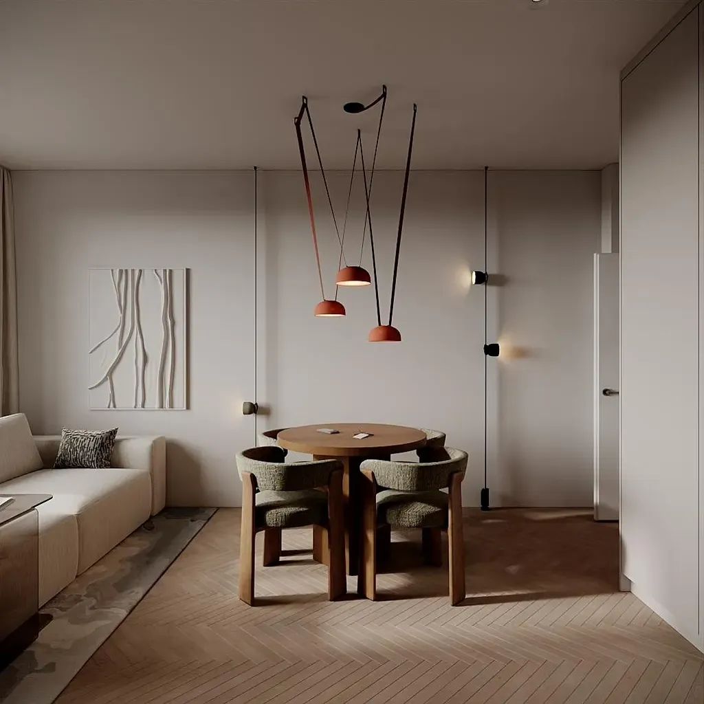 Celkově půdorys působí vzdušně, s důrazem na funkčnost a pohodlí, ideální pro jednotlivce či pár.