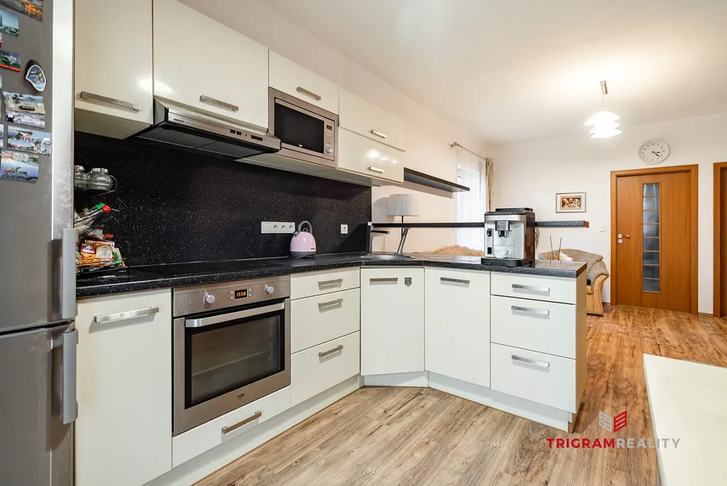 Zprostředkuji Vám pronájem vkusně řešeného bytu o dispozici 3+kk o celkové ploše 66 m², do které je započítána i plocha balkonů. K dispozici jsou zde dva, jeden přístupný z kuchyňské části (3,8 m²) a druhý z obývací místnosti