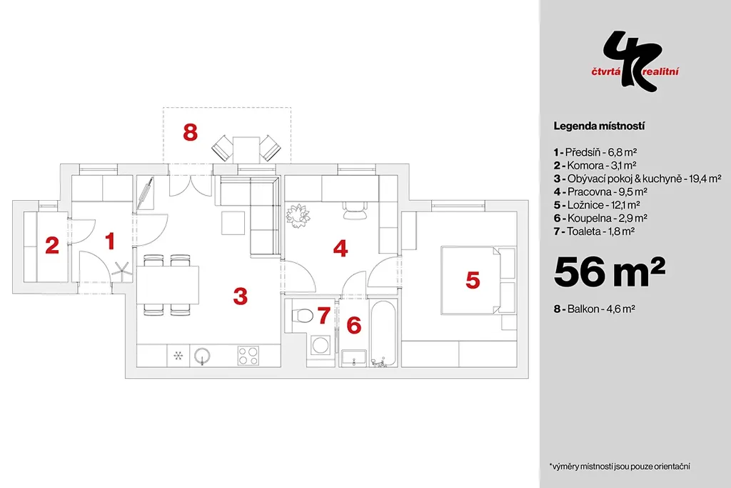 Byt o užitné ploše 56 m² je částečně vybavený a disponuje lodžií, která poskytuje příjemný prostor pro relaxaci s výhledem do parku. Součástí bytu je také parkovací stání přímo v domě.