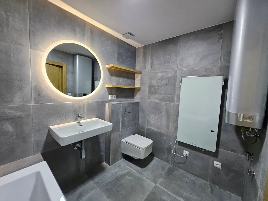 - koupelny s obklady italské výroby, sanita Laufen, topné panely Hot Spot Crystal, ventilátory s vlhkostním čidlem, příprava na pračku
