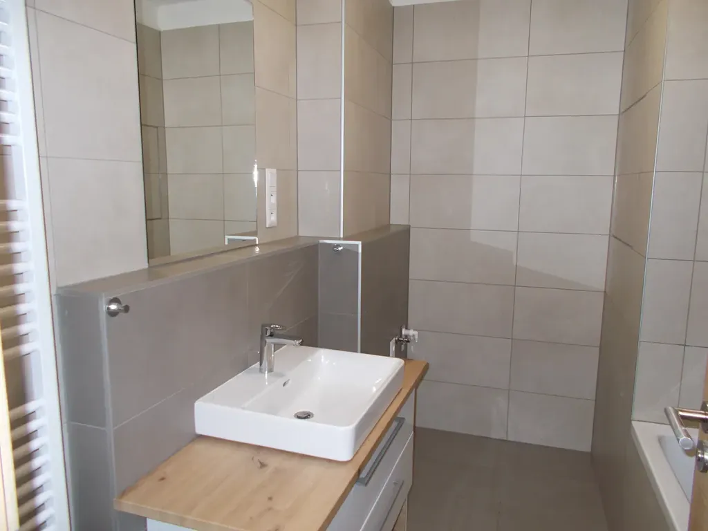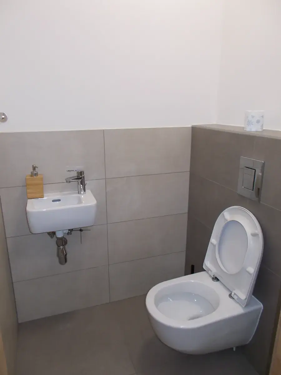 V koupelně vana, umyvadlo, samostatné WC s umyvadlem.