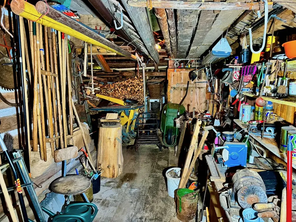 • Přízemí: centrální chodba, kuchyně s kachlovými kamny (vyžadují odborný servis), dva pokoje, vodárna, spíž, sklad, přístěnek se suchou toaletou, garáž