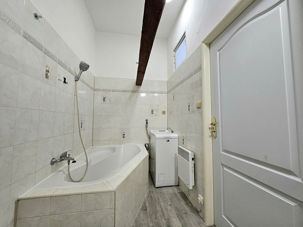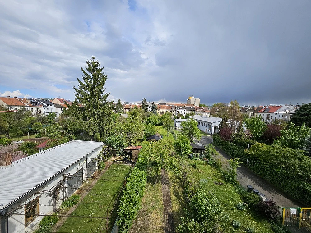 Dispozice - kuchyně 14 m², samostatný pokoj 15 m² se vstupem na galerii 4 m² (vhodná jako spací část nebo odkládací plocha), samostatný pokoj orientovaný do klidného vnitrobloku se zahradami 16 m², prostorná předsíň 5 m², koupelna s vanou, společná s WC 5 m².