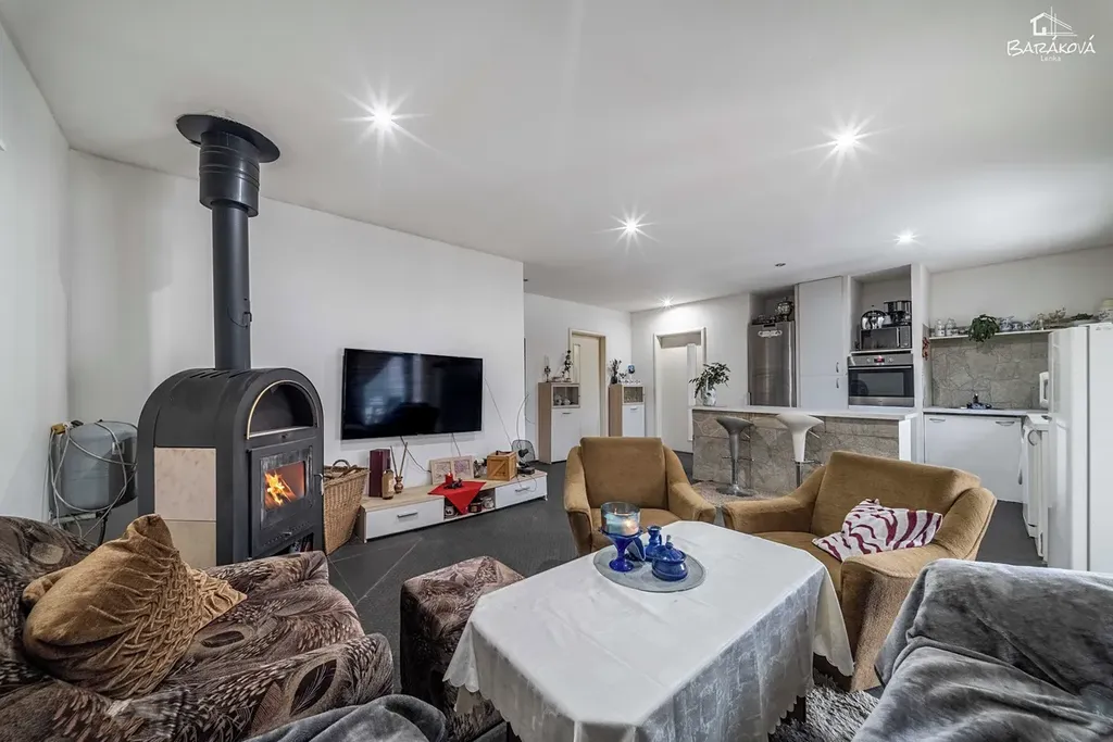 Dům je řešen jako praktické a světlé rodinné bydlení s příjemnou atmosféru. Dominantou obytného prostoru jsou krbová kamna s výměníkem, která zajišťují vytápění domu a zároveň vytvářejí útulný domov s nízkými provozními náklady.