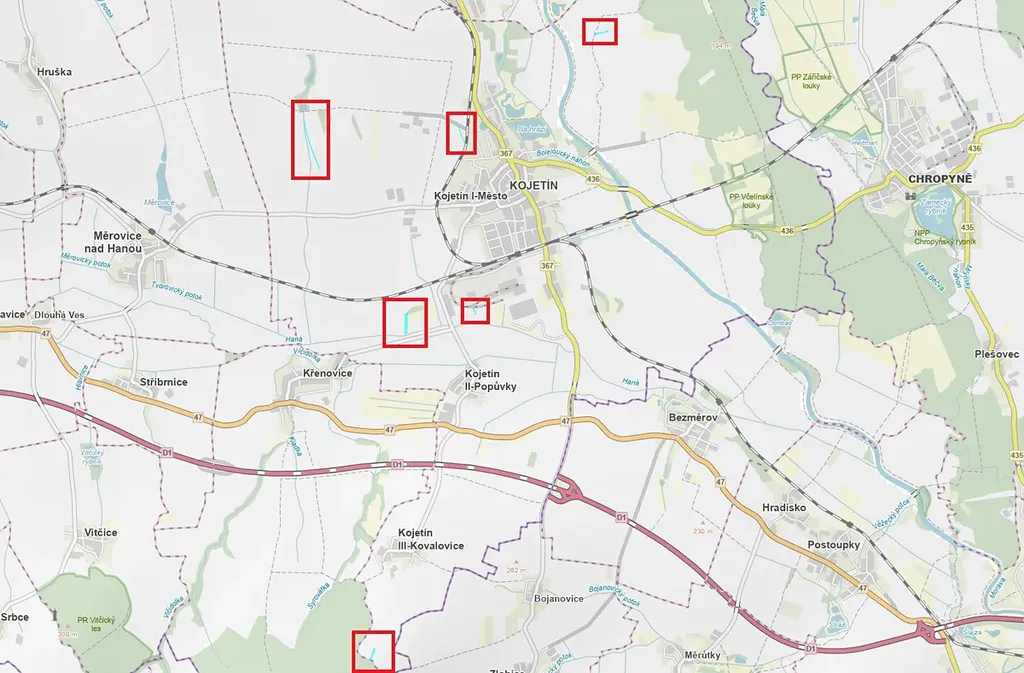 V kú Kovalovice u Kojetína se jedná o všechny pozemky na LV č. 367.