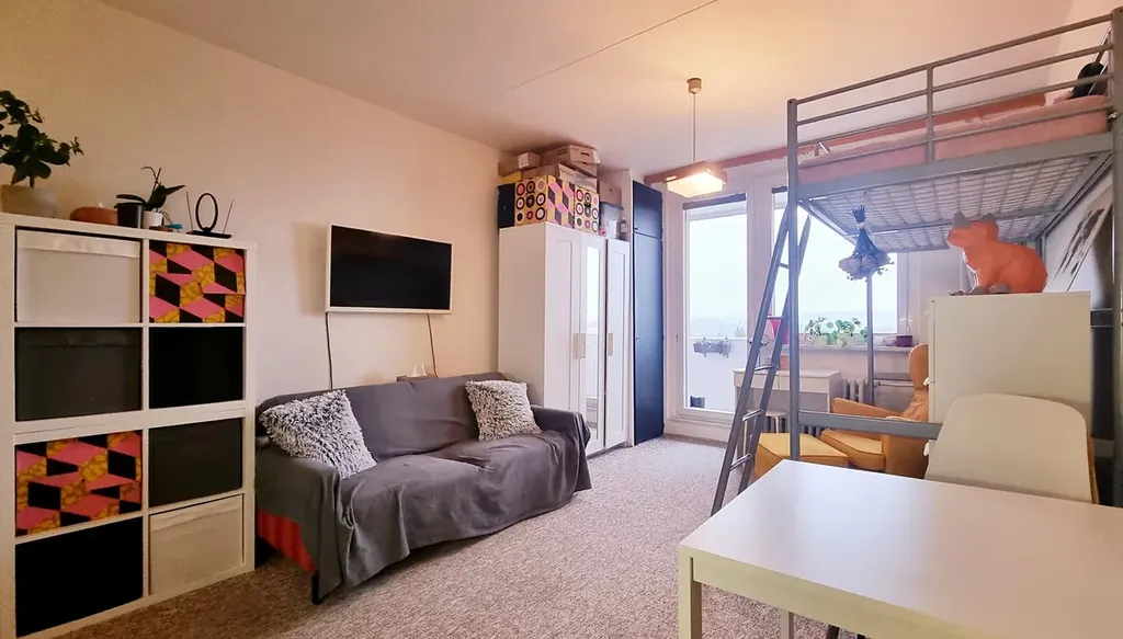 Byt (26 m²) se nachází v 8. patře revitalizovaného panelového domu se dvěma výtahy.