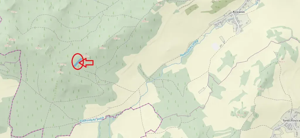 - p.č. 1776/4 vedená jako lesní pozemek o celkové výměře 1 597 m2, z toho vlastníme podíl 1/2 tedy 799 m2.