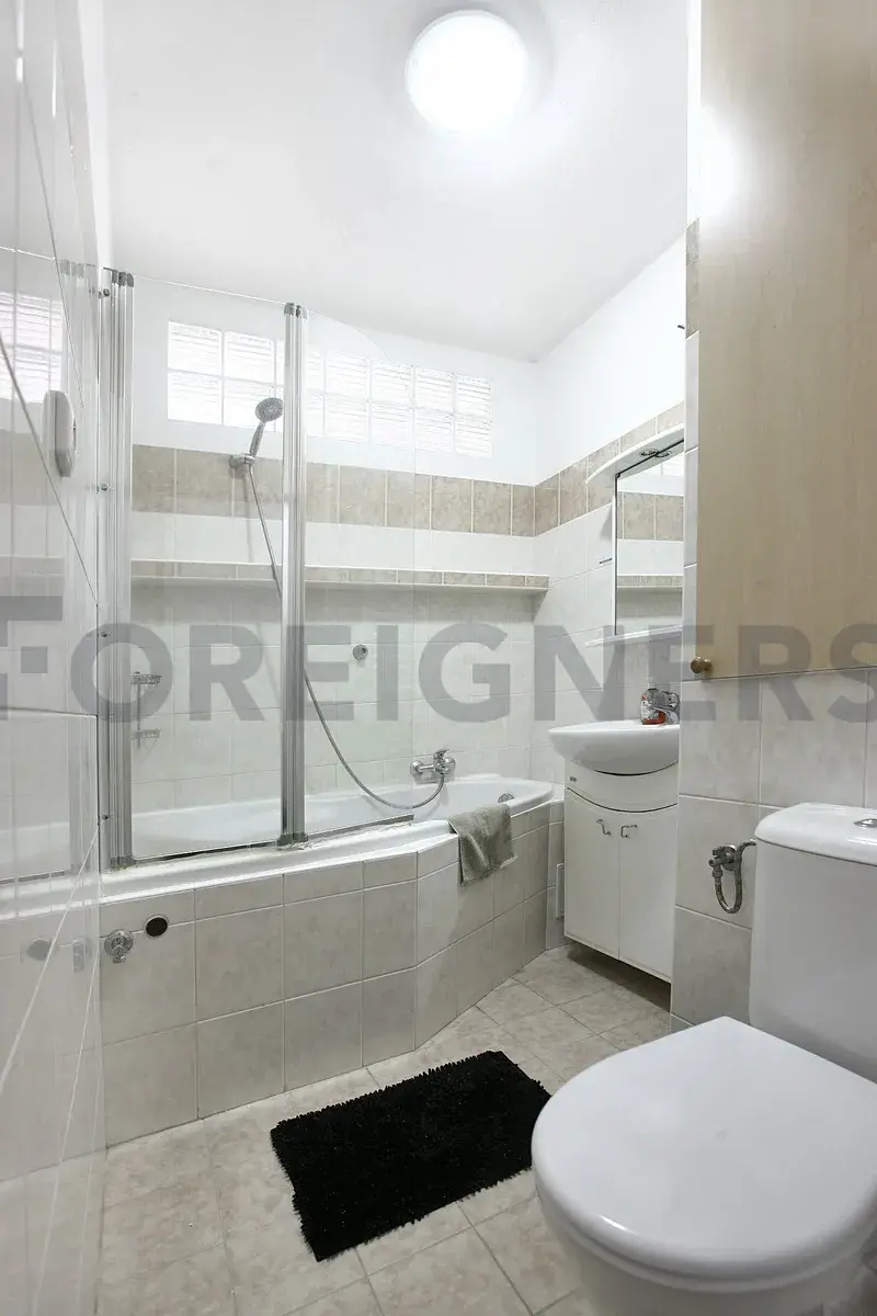 Součástí kuchyňské linky je plynový sporák, myčka, pračka, sušička, lednice. Koupelna s toaletou a vanou. Samostatná šatna.