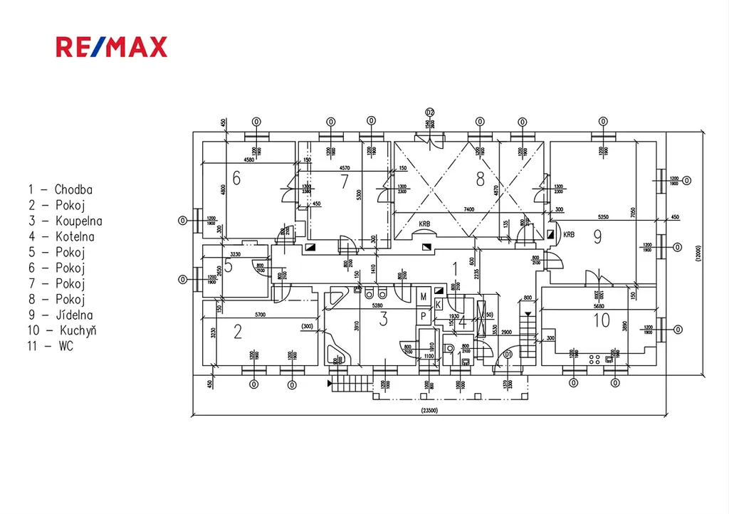 • Dvě patra a pokoj v mezipatře, zastavěná plocha 317 m², 11 místností.